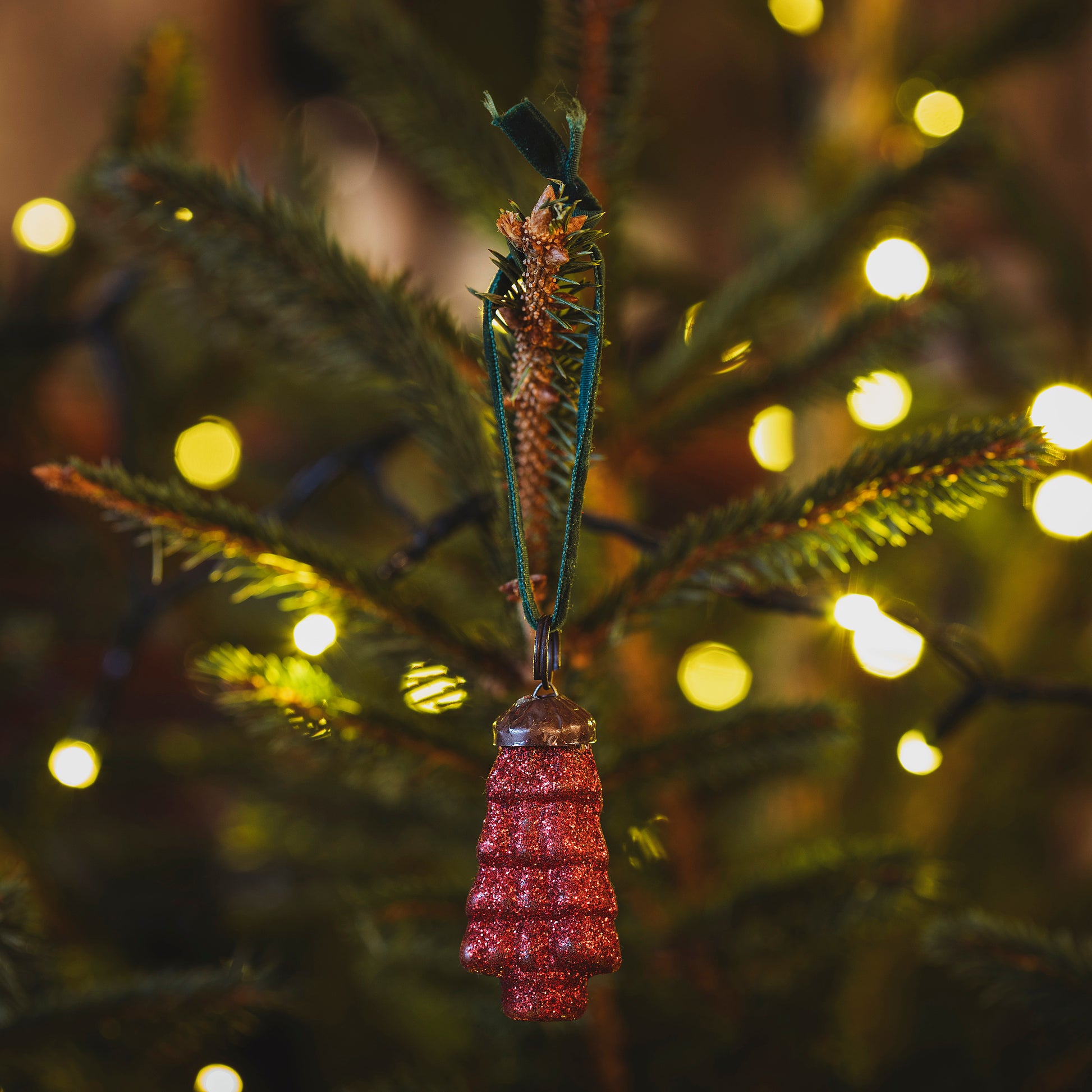 Little glitter tree shaped decoration with velvet ribbon.