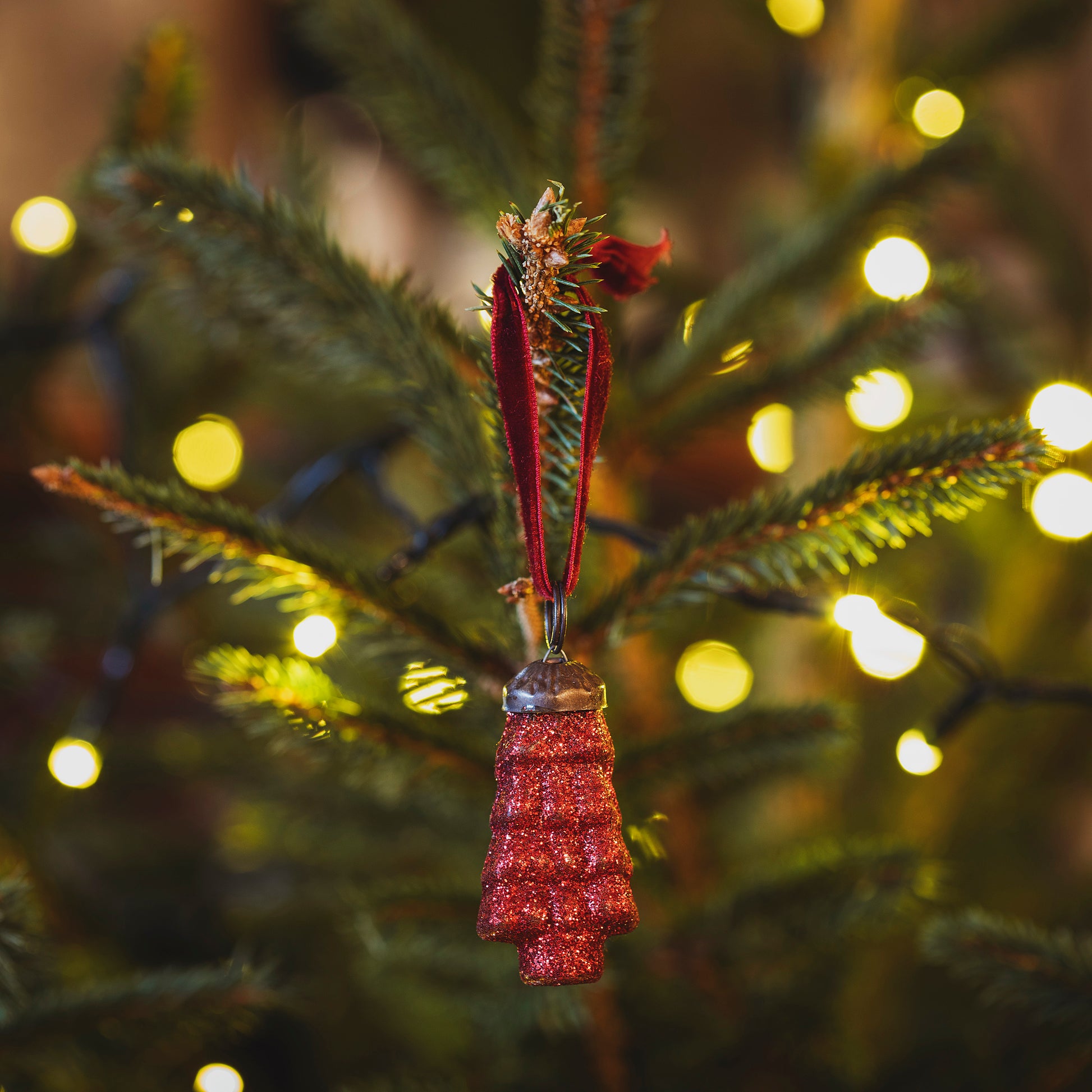 Mini Red Glitter Christmas Tree Decoration